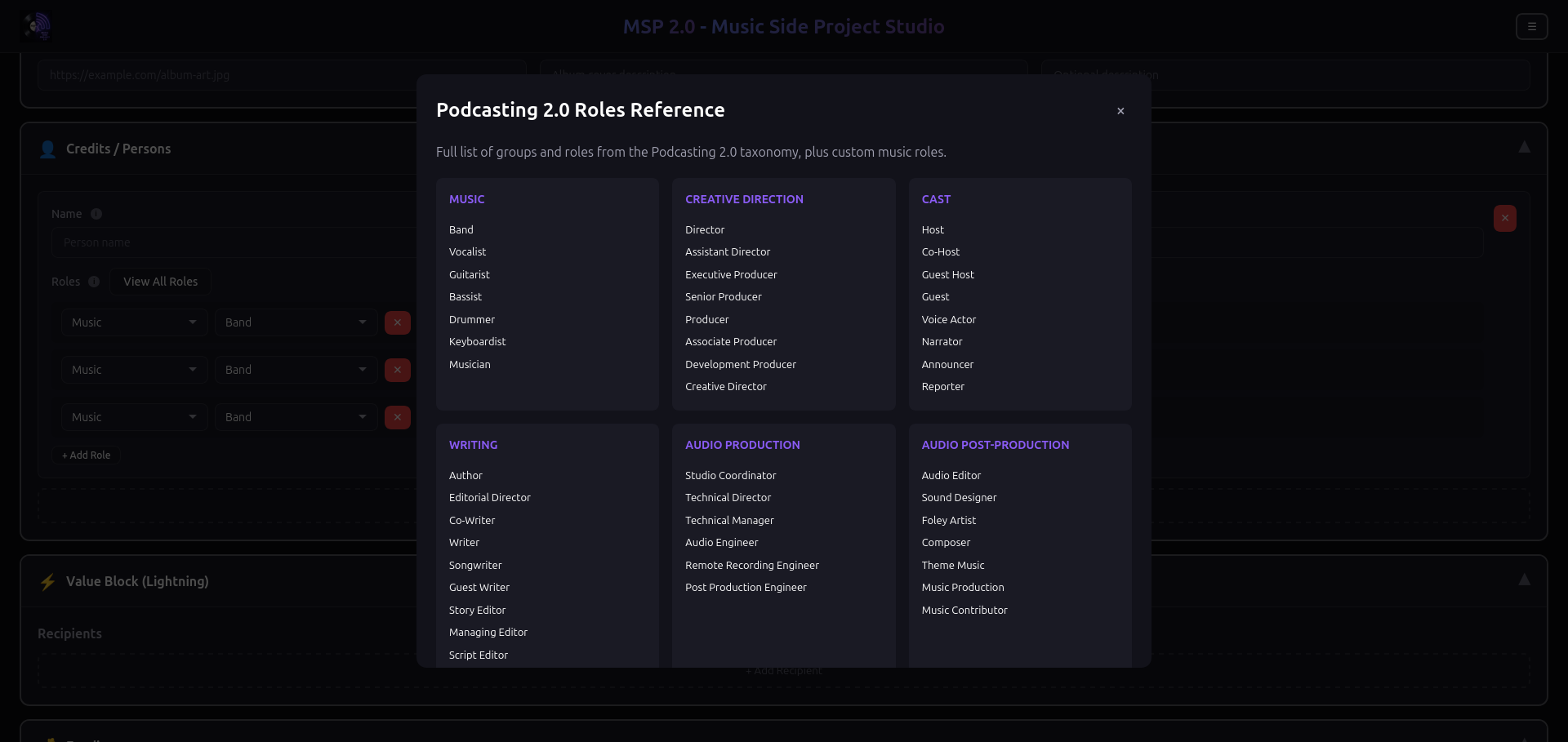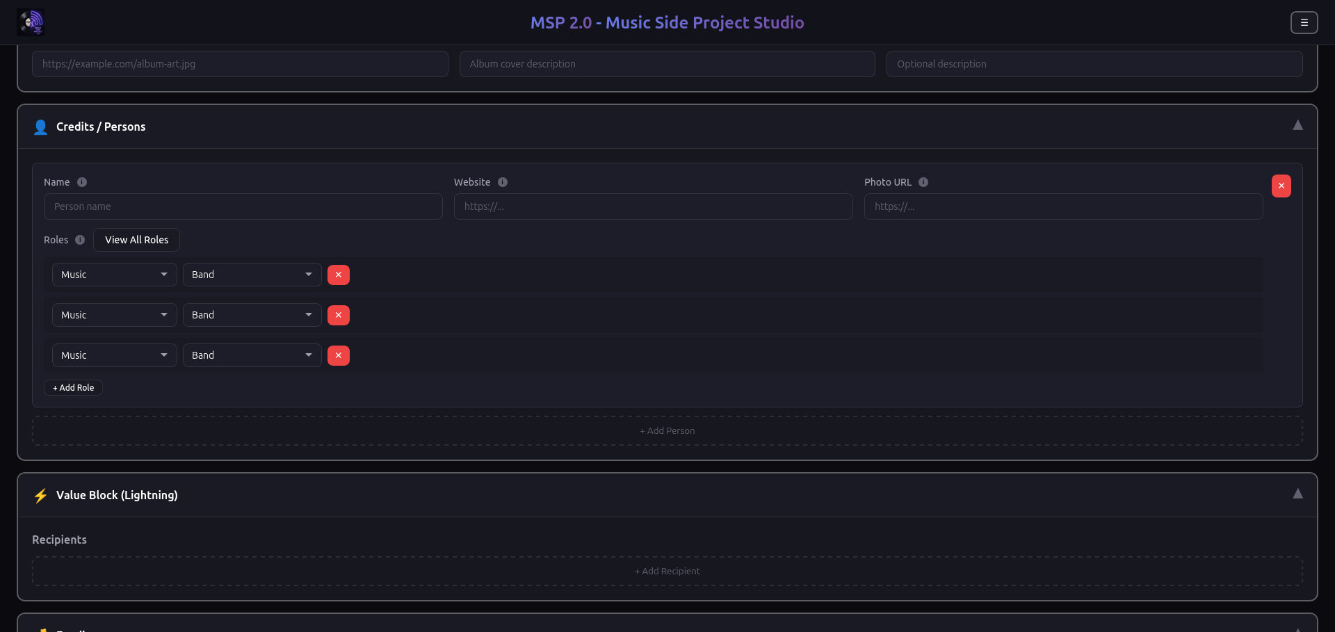This is an updated version of the original musicsideproject.com by the legendary nostr:npub1yvgrrzf4dnmu30qfhw95x87ruu0g2kpv3a64h8hpvqsre8qeuspsgd6pv9. Its a simple web form that builds a podcasting 2.0 RSS feed for your music. site built and ran by nostr:npub177fz5zkm87jdmf0we2nz7mm7uc2e7l64uzqrv6rvdrsg8qkrg7yqx0aaq7