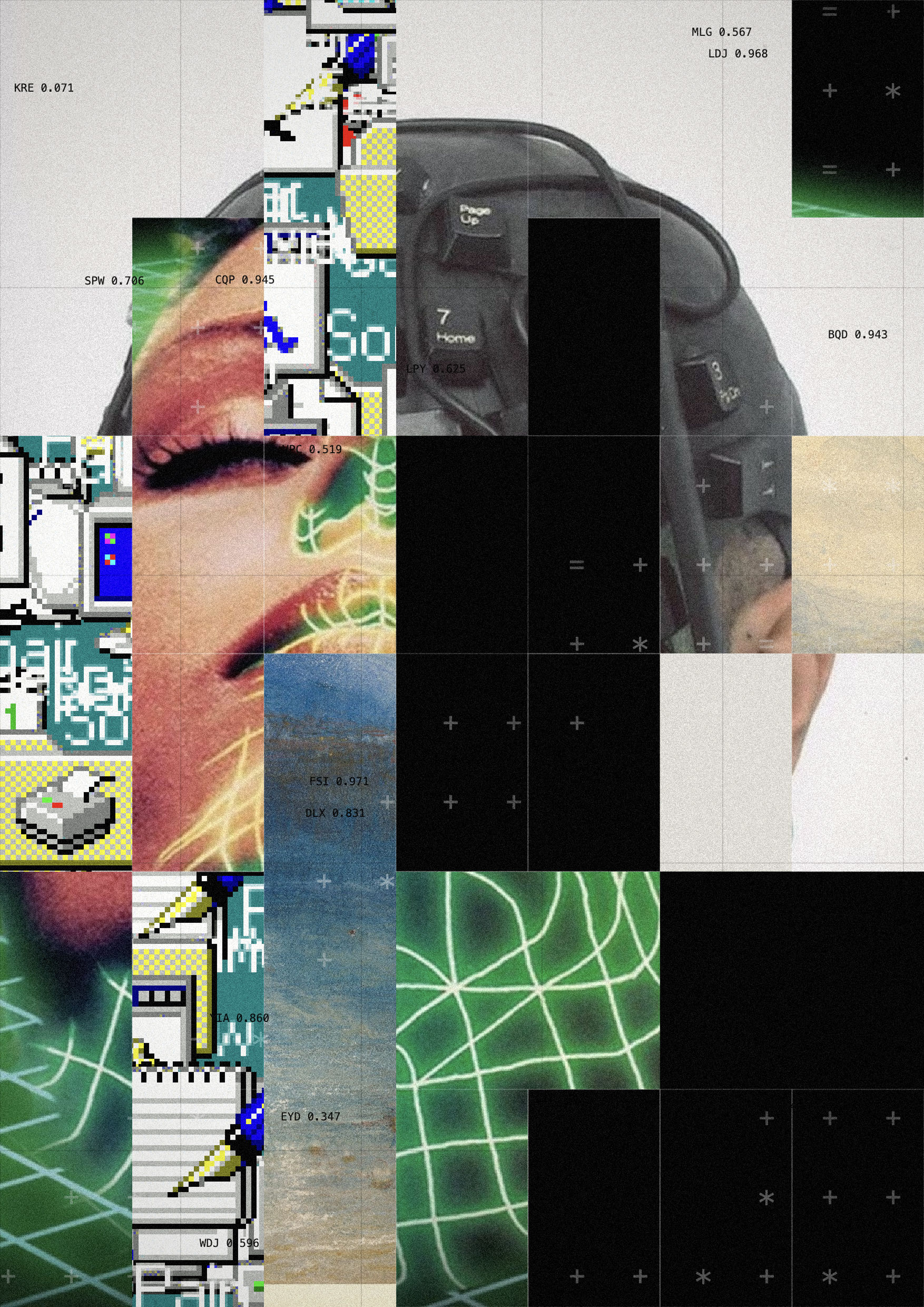 Each collage becomes a graphic expression of the model’s internal turbulence. Layer sits above layer, and underneath we glimpse not a complete scene but fragments of training data and partial connections, the visual equivalent of a model synthesizing meaning from incompatible sources. Are we witnessing the big bang of meaning for machines?