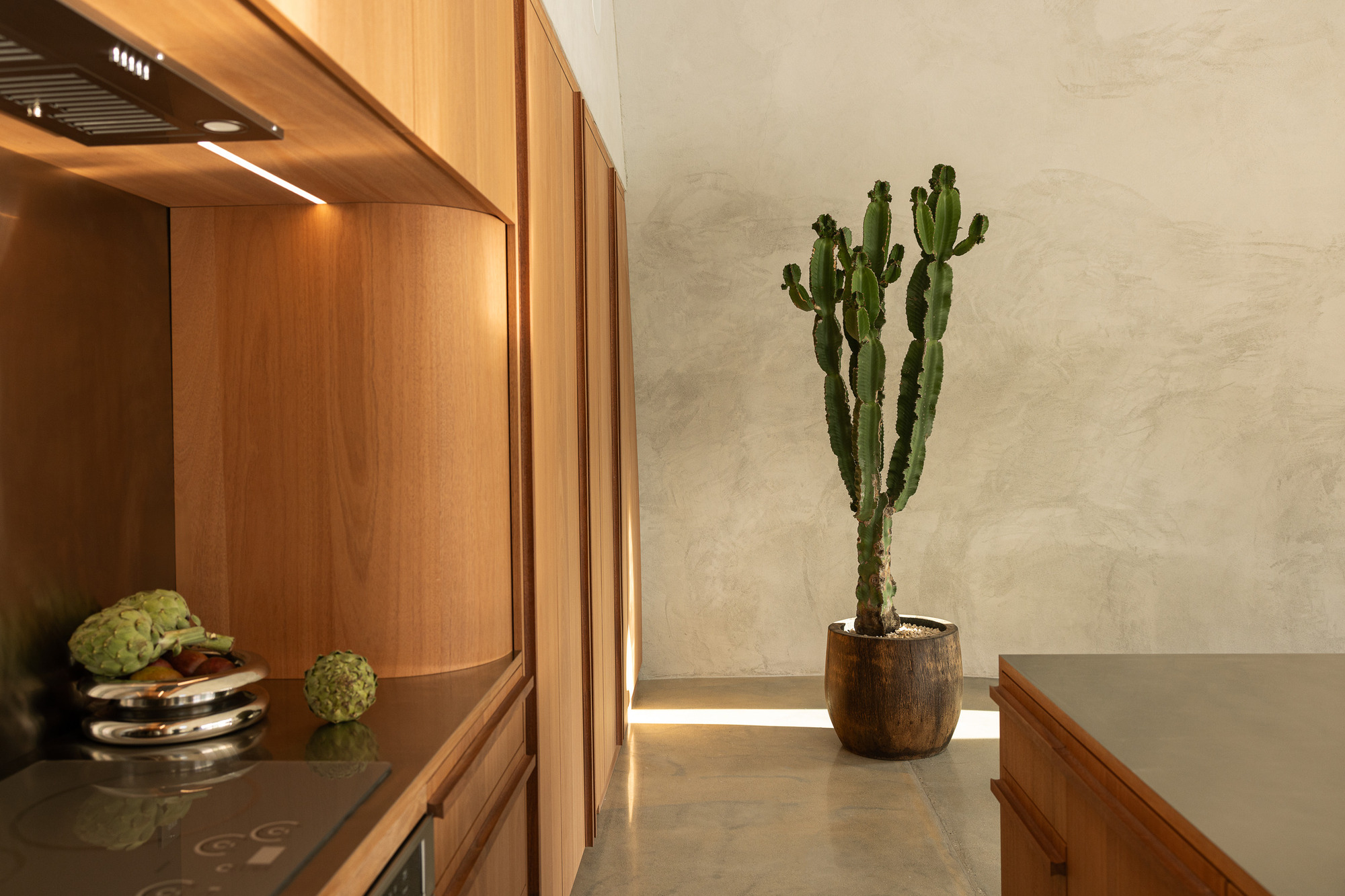Merricks Farmhouse #architecture Architects: Michael Lumby Architecture, Nielsen Jenkins Area: 640 m² Year: 2021 Photographs: Tom Ross Builders: Atma Builders Landscape Design: Franchesca Watson Garden Designer, Robyn Barlow Landscape: Julian McCarthy Landscapes Architect: Michael Lumby with Nielsen Jenkins Country: Australia This house is located on a spectacular 50-acre property with views over vineyards towards Philip Island and Western Port Bay and is conceived of as an abstraction of a typical Australian Farmhouse. While sitting on a prominent hilltop affords it the best views, it also means that the house is somewhat exposed to the coastal climate of the region. Spread out over a single level, the program of the house is arranged to counter this, creating a large and sheltered courtyard garden in its center. This courtyard becomes the most important room in the house, acting as a reference and refuge from the expansive nature of the outlook, as well as an introspective focal point for the house once night falls. The heft of the walls, deep eave overhangs, and dark ceiling finishes further enhance this experience of refuge within the broader context. Although it is a large house with only 2 permanent residents, the project needs to expand and contract as 4 children with their respective families visit for holidays. 3/4s of the house can be shut down, allowing all the house's ancillary functions to be experienced simply as a courtyard wall. The front wing then, with all the main living spaces, functions as a simple one-bedroom pavilion, affording the house a spatial intimacy that belies its size. While the roof is conceived of as a singular and sleek element, visible in the landscape, the walls it is placed on are seen as more elemental in nature. 1m thick and planted, these walls project out into the landscape, editing and choreographing views and circulation. While most of these projecting walls frame views outward, when adjacent to more private spaces, they wrap back around to capture private courtyards, giving even intimate spaces a floor-to-ceiling outlook over greenery. This is a constant theme: The architecture recedes and the building acts simply as a lens from which to experience the landscape. Every room looks out onto a garden. Wherever possible, the design and siting was informed by the existing trees. The old driveway entry avenue of Elms was retained and repurposed as the main pedestrian entry sequence. The old windbreak of lilly-pillies to the north of the pool was retained to create a ‘full stop’ to the house, a second, softer courtyard with a wall of trees as an edge. As the site has no council mains, all of the site’s domestic water is captured by the large, singular roof and stored in circular concrete water tanks. This ubiquitous item of farming infrastructure is taken through the project as a motif, and used throughout the garden spaces as birdbaths, a firepit, and a series of ponds, each becoming points of reference within the landscape.