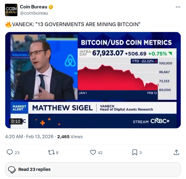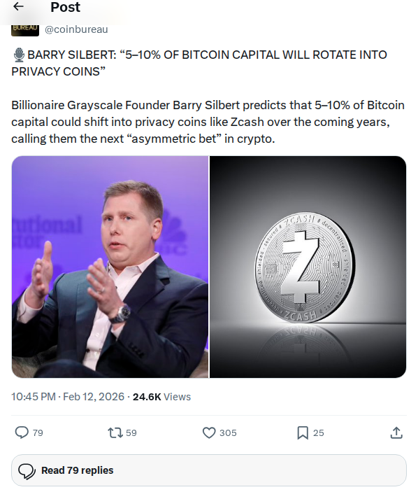 { "reply": "Interesting to watch capital \*explicitly\* flow into privacy.\n\nPrivacy coins haven't seen this kind of attention in a while.\n\nBetting on privacy adoption as a \*response\* to surveillance makes sense" "insight": "Frame interest in privacy coins as a logical π π Original Post: https://nitter.cz/coinbureau/status/2021958723007332368