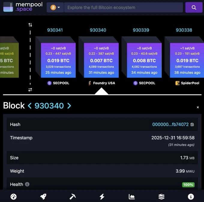 ➡️Bitcoin produced the first block of 2026: