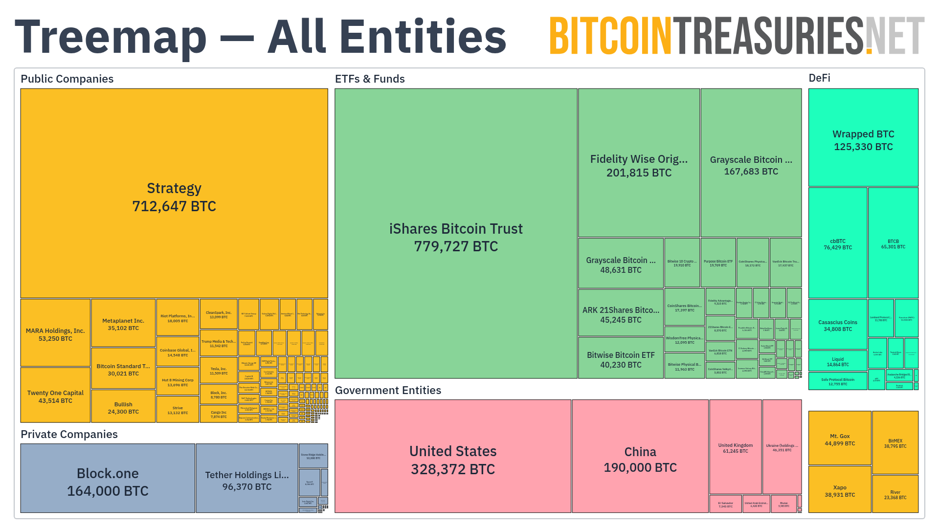 Tracking publicly traded companies and other large entities that hold bitcoin in their treasury.