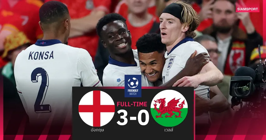 ⚽ อัปเดตข่าวกีฬา :: พาดหัวข่าว: เกฮี เบิ้ลจ่าย! สิงโตคำราม ขยี้สบายนัดลับแข่ง เนื้อหาข่าว: อังกฤษ เปิดเกมด้วยชัยชนะเหนือ เวลส์ โดยเอาชนะ 3-0 ในนัดกระชับมิตรที่สนาม เวมบลีย์ เมื่อวันพฤหัสบดีที่ผ่านมา "สิงโตคำราม" ของอังกฤษ ได้ทำประตูสามประตูแล้ว โดยมอร์แกน โรเจอร์ส ทำประตูแรก ในนาที 3 จากการช่วยเหลือของมาร์ค เกฮี และโอลลี่ วัตกิ้นส์ ทำประตูสองและสามตามลำดับ เกมครึ่งแรก อังกฤษ ได้ทำประตูสามประตูแล้ว ทำให้ เวลส์ ไม่มีโอกาสกลับมาเล่นเกมที่เหลืออีก โดยจอร์แดน พิคฟอร์ด นายทวารของอังกฤษ ยังคงเก็บตาข่ายไว้อย่างยอดเยี่ยม จบเกม อังกฤษ ชนะ เวลส์ 3-0 ก่อนจะไปแข่งคัดบอลโลก 2026 โซนยุโรป กลุ่ม เค เยือน ลัตเวีย คืนวันอังคารที่ 14 ตุลาคมนี้ รูปภาพ : ที่มา: https://www.siamsport.co.th ⏰ 918381 #siamstr #siamsport