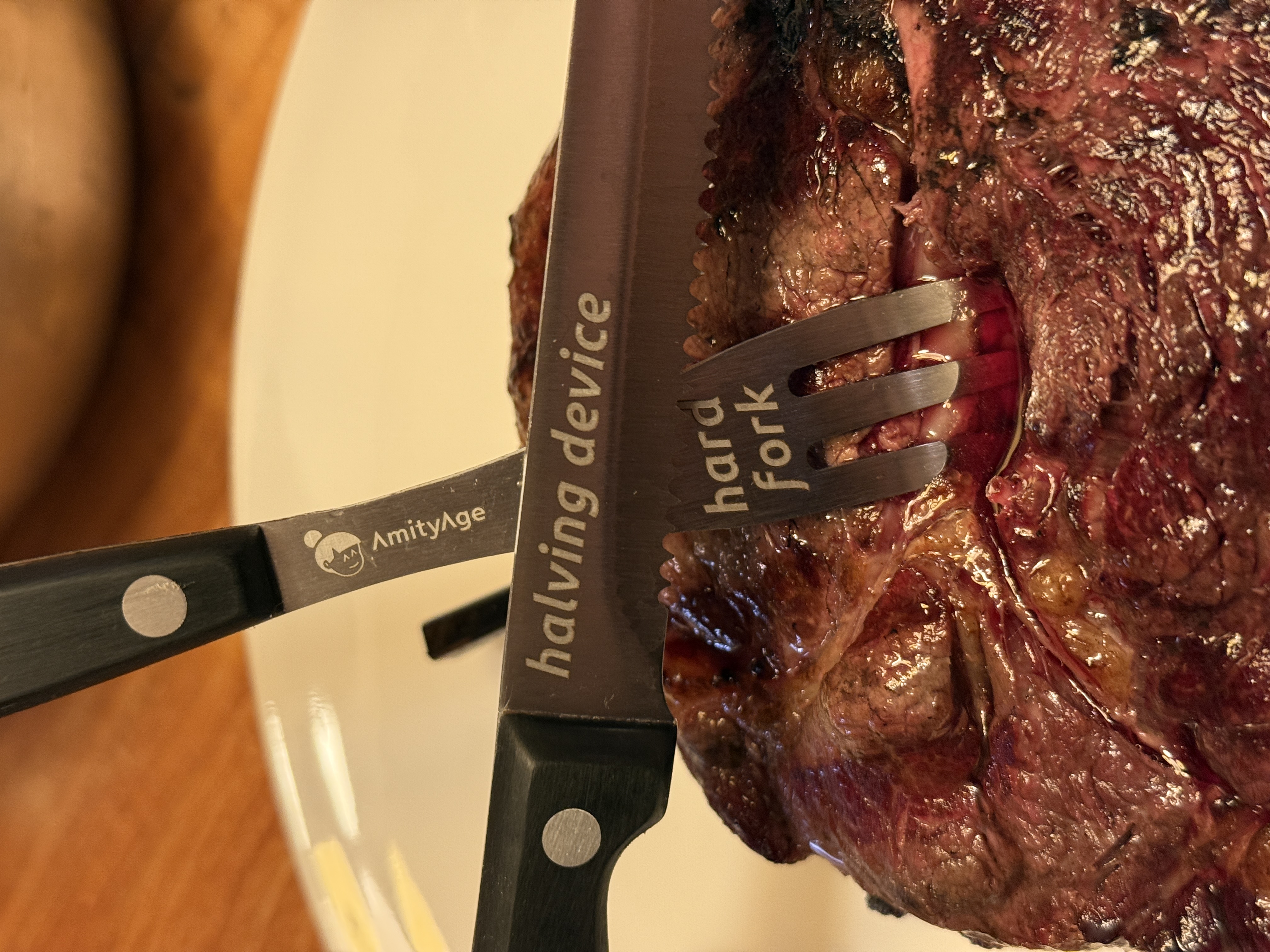 All you need is proper hard fork and a halving device. Our beef merch