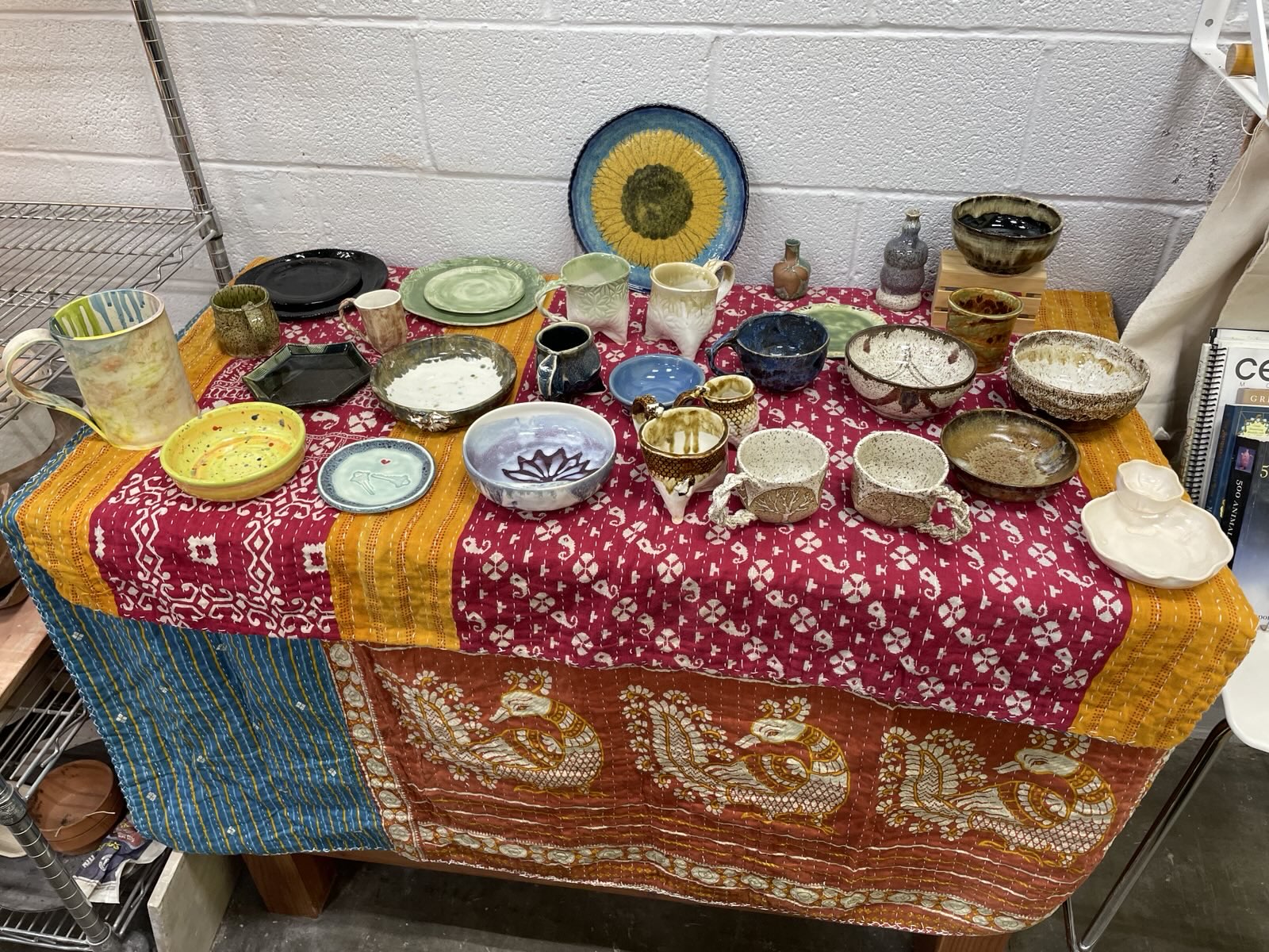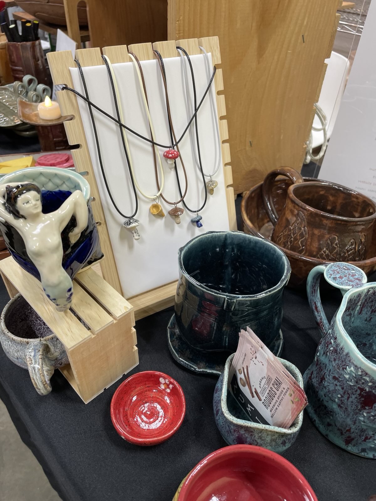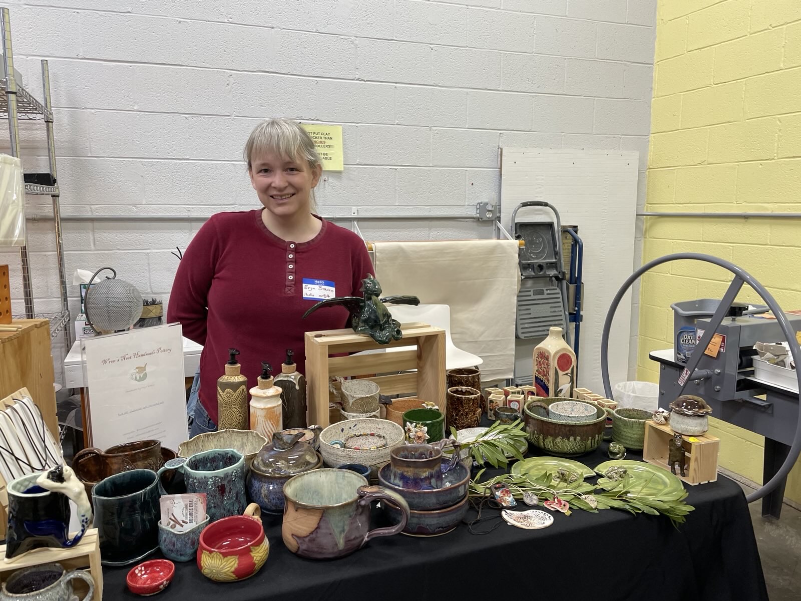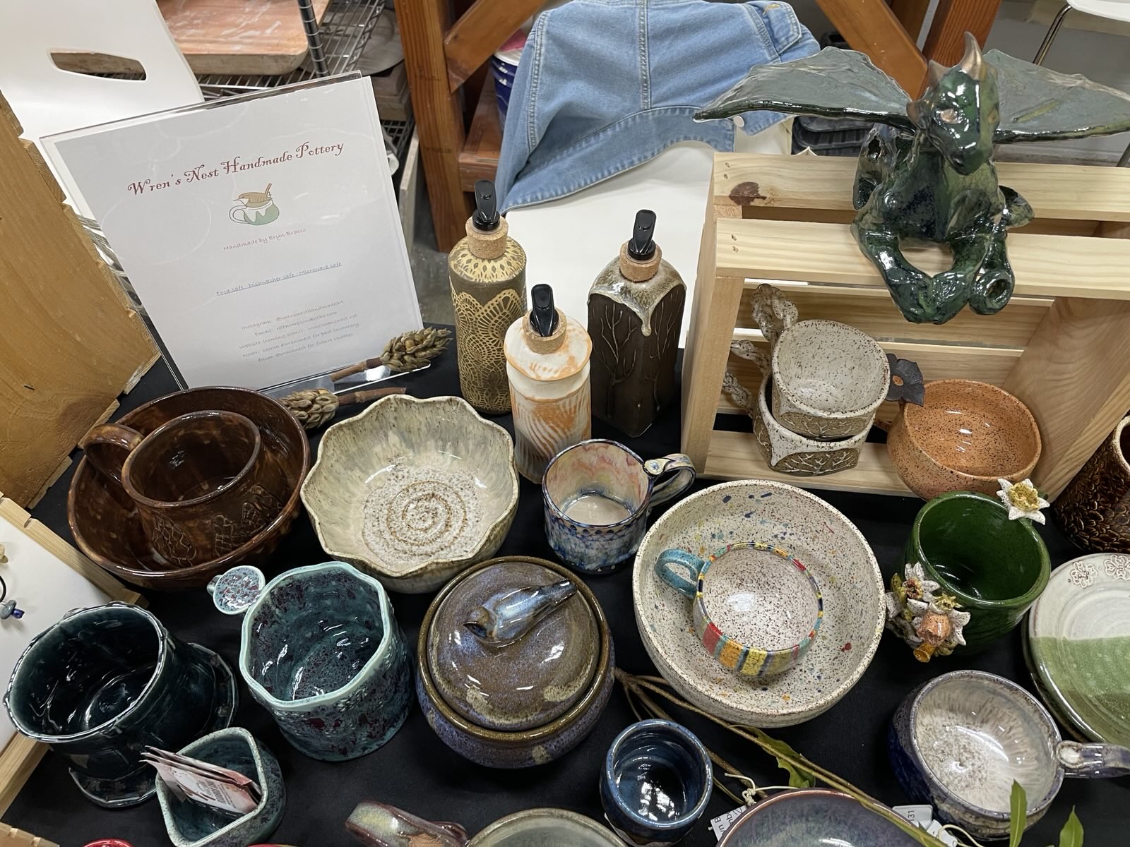 Today was the preview sale at my pottery studio! Come by Alexandria Clay Co-op tomorrow (Saturday, Nov. 14) from 10 AM to 4 PM for the main sale; no tickets needed! #pottery #ceramics #clay #glaze #sale #alexandriava #nova #virginia #va #wrensnest #handmade #art #artstr #grownostr #mugs #bowls #plates #jewelry #sculpture #events