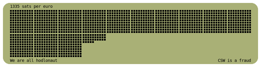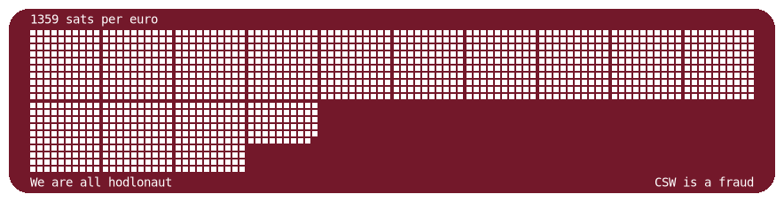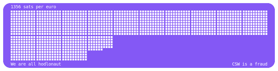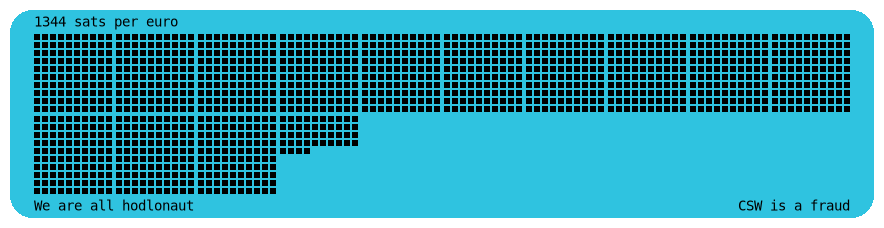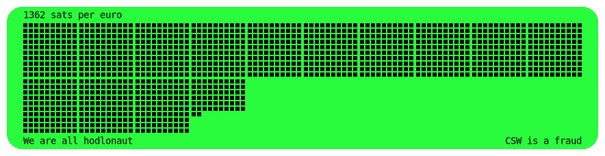 Posts sats per Euro every four hours. Price data from Bitfinex. Automation by nostr:npub1hklphk7fkfdgmzwclkhshcdqmnvr0wkfdy04j7yjjqa9lhvxuflsa23u2k.